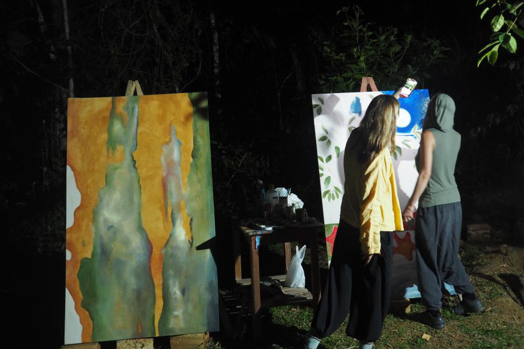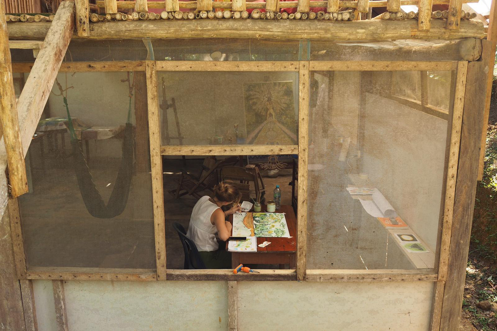For the month of July 2023, Sophie Naylor stayed at Sachaqa in San Roque De Cumbaza, Peru in the Amazon rainforest for an artist residency. During her stay, she experimented with new painting styles and learned how to make natural pigments from the earth and river rocks in the jungle.